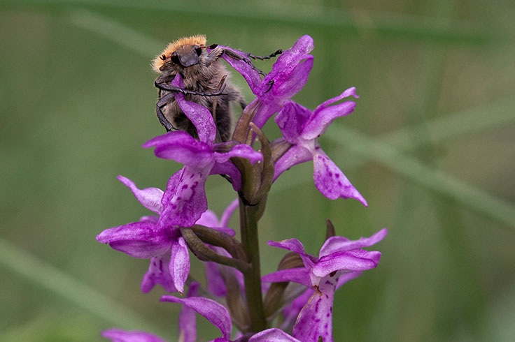 Biller er viktige pollinatorer for marihånd. Her en humlebille (Trichius fasciatus).